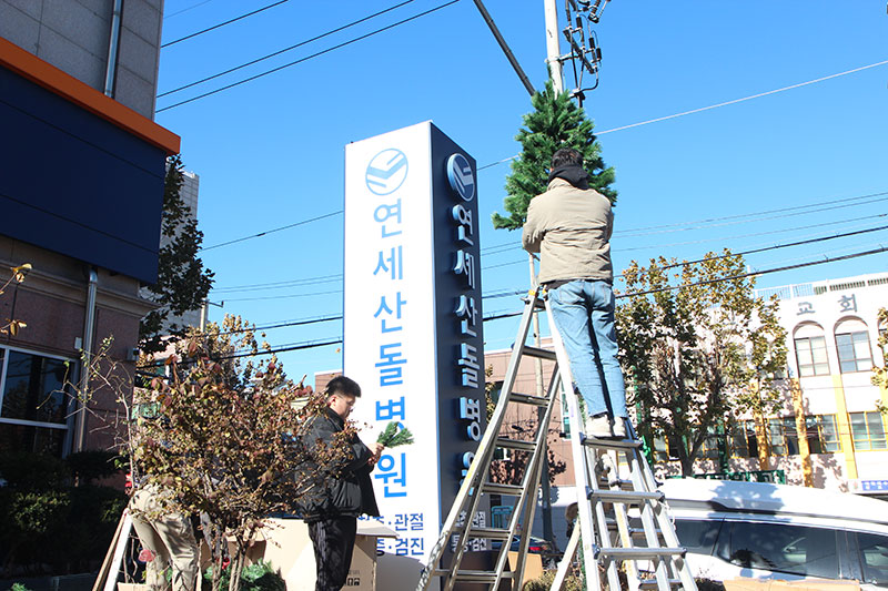 성탄 트리 의미 ‘연세산돌병원’ 크리스마스 트리 설치 중
