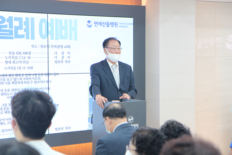 연세산돌병원 9월 월례 조회 연세산돌병원에서는 매달 한 번씩 진행되는 월례 회의를 통해 지난 한 달간의 업무를 회고하고 앞으로의 방향을 설정합니다.