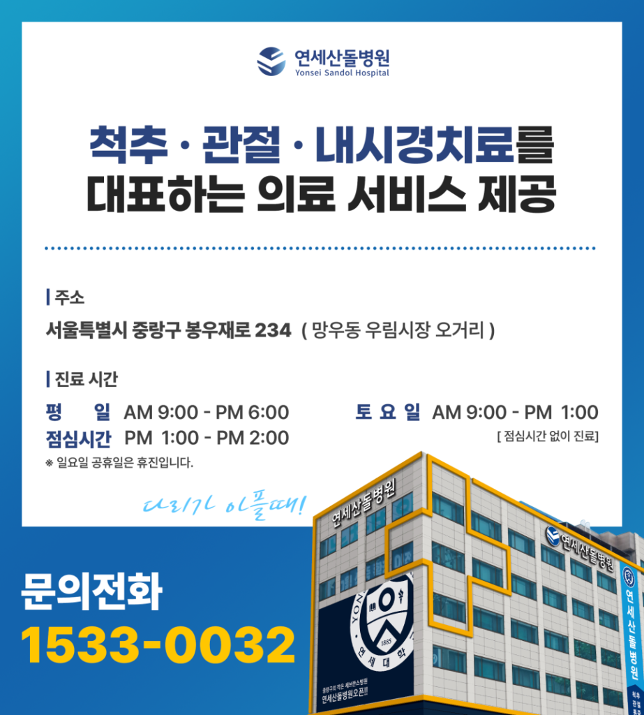 중랑구정형외과 목디스크 언제 병원을 가야할까 목디스크는 요통이나 두통과 같은 증상을 유발할 수 있는 흔한 질병입니다. 중랑구에 위치한 정형외과에서는 목디스크 관련